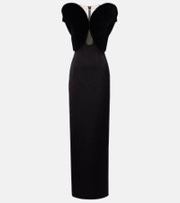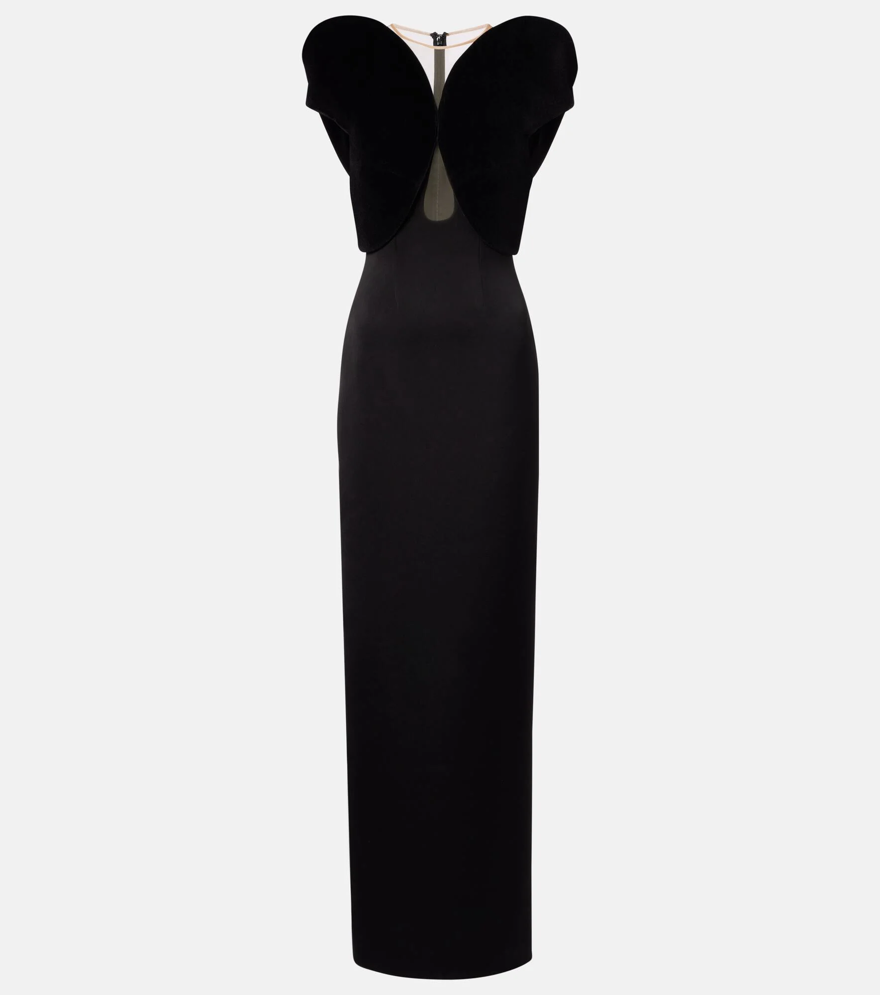 David Koma's glamorous styles are the key to making an entrance when it matters the most. This satin gown is designed with a sculptural skirt and a plunging neckline defined by circular panels around the arms. Product Details - Material: 68% polyamide, 32% modal - Care instructions: dry clean - Made in the UK - Designer color name: Black - Item color: black - Lining: 64% viscose, 36% polyester - Closure: zipped back - Long vent - Item number: P01080128 Size & Fit - True to size - Semi-sheer - Cinched waist - Non-stretchy fabric - slit length 77cm-30.5" - The model seen in the picture is 178cm-5'10" and wearing a size UK 8