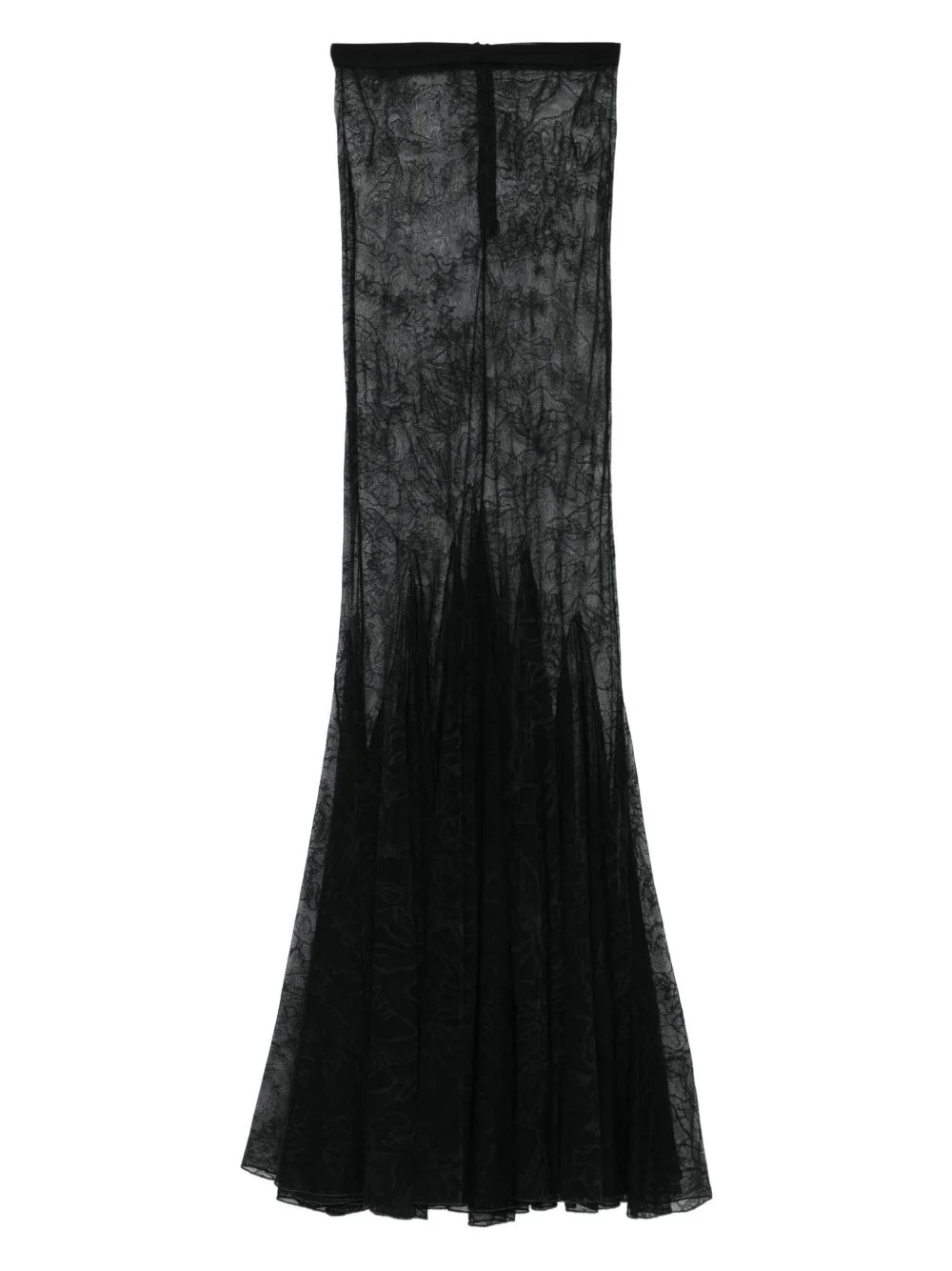 semi-sheer skirt Highlights - Black - Flared hem - High waist Made in United Kingdom Composition Nylon 98%, Spandex/Elastane 2% SIZE & FIT Model measurements Height 5 ft 10 in(1.77 m) Bust/Chest 32.28 in(82 cm) Hips 35.03 in(89 cm) Waist 25.19 in(64 cm) Washing instructions Specialist Cleaning