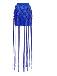 sequin-embellished mini skirt Highlights - Royal blue - Sequin embellishment - Knotted overlay - Fringe detailing - Straight hem Imported Composition Polyamide 92%, Elastane 8% Washing instructions Read Manufacturer Guidelines
