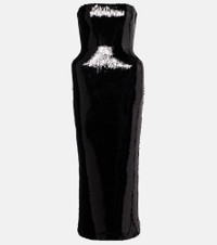 David Koma's glamorous styles are the key to making an entrance when it matters the most. Complete with a bustier bodice, this dress is cut to a midi length and features all-over sequins and exaggerated padded hips. Product Details - Material: 100% polyester - Care instructions: dry clean - Made in the UK - Designer color name: Black - Item color: black - Lining: 100% cotton - Boning - Padded cups - Closure: concealed zipped back - Item number: P01080177 Size & Fit - True to size - Strapless - Internal boned corset for support - Fitted - Slightly stretchy fabric - The model seen in the picture is 178cm-5'10" and wearing a size UK 8
