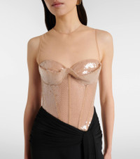 David Koma's glamorous styles are the key to making an entrance when it matters the most. Carefully crafted in the U.K., this gown is a paneled piece with a sequined bustier bodice and a draped skirt with an asymmetric waistline. Product Details - Material: 90% polyester, 10% polyamide - Care instructions: dry clean - Made in the UK - Color: beige - Designer color name: Beige/Black - Material II: 50% viscose, 47% acetate, 3% elastane - Material III: 92% polyamide, 8% elastane - Boning - Underwired cups - Closure: invisible zipper - Item number: P01125036 Size & Fit - True to size - Strapless - Internal boned corset for support - Semi-sheer - Cinched waist - Non-stretchy fabric - The model seen in the picture is 178cm-5'10" and wearing a size UK 8