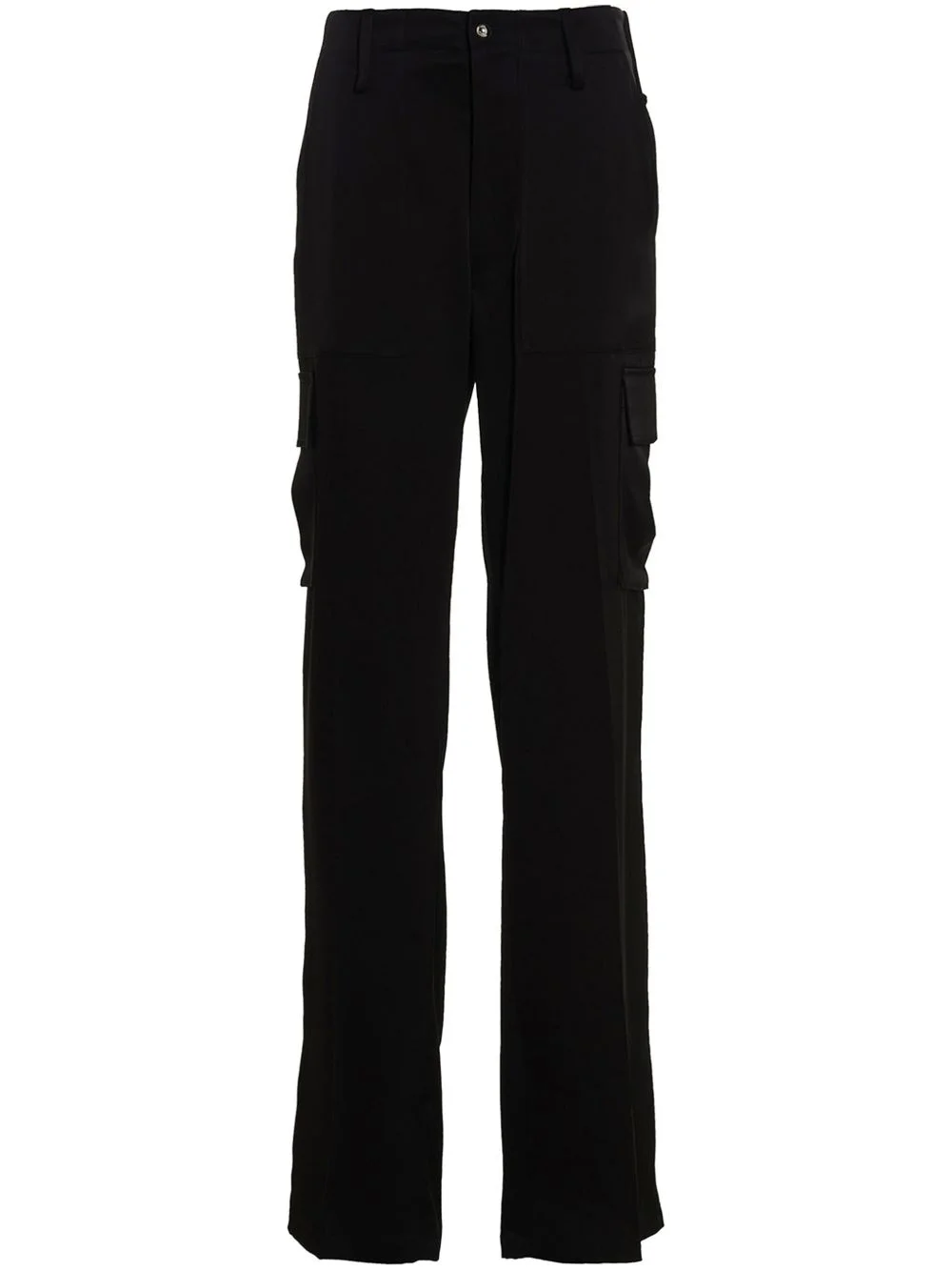 slim cargo trousers Highlights - Black - Button fly fastening - Two side slit pockets - Two rear flap pockets - Two side cargo pockets Made in United States Composition Fabric 78%, Polyester 22%