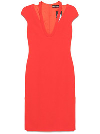 cady midi dress Highlights - Sunset orange - Concealed rear hook and zip fastening - Cut-out detailing - V-neck - Cap sleeves Made in United Kingdom Composition Viscose 62%, Polyamide 33%, Elastane 5% SIZE & FIT Model measurements Height 5 ft 9 in(1.75 m) Bust/Chest 34.64 in(88 cm) Hips 36.61 in(93 cm) Waist 26.37 in(67 cm) FittingInformation Designed for a close fit throughout Made from a midweight fabric