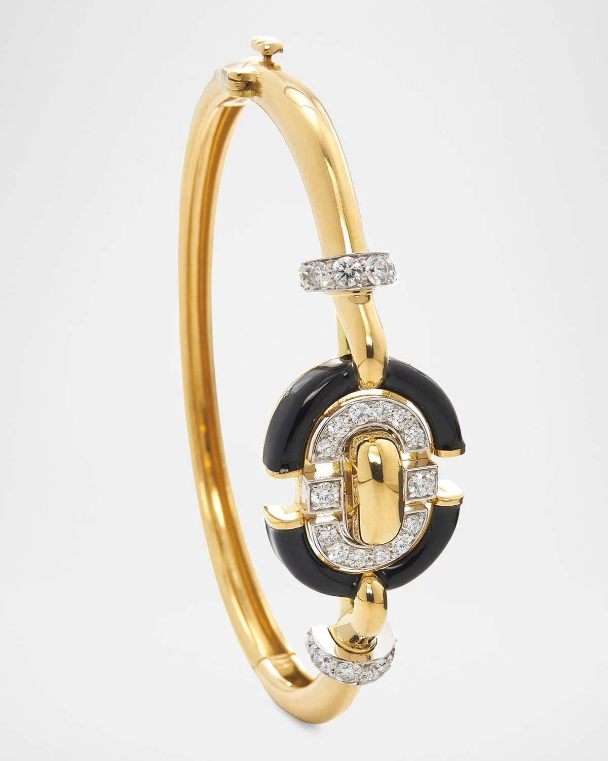 18K Gold & Black Enamel Unity Bracelet w/ Diamonds