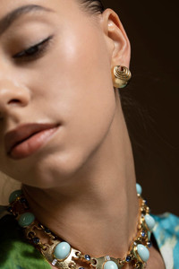 DETAILS AND INSIGHT David Webb small concentric crescent earrings from the ancient world collection. 18k Hammered Yellow Gold Style DS721-21431E-1