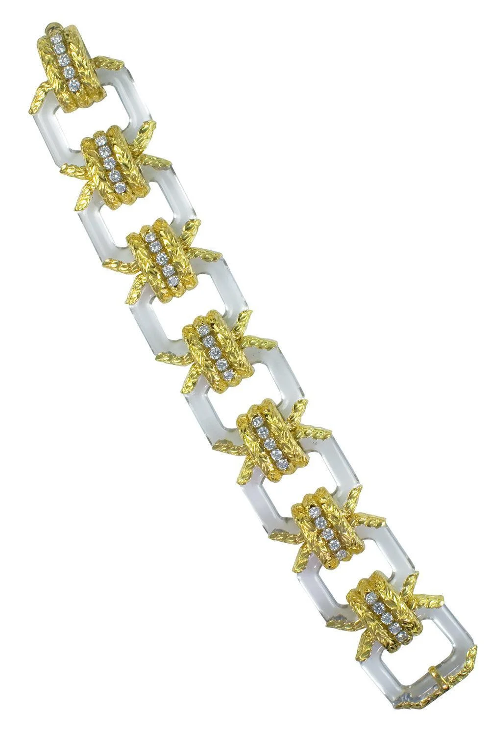 DETAILS AND INSIGHT David Webb twilight crystal diamond laurel bracelet in yellow gold. 18K Yellow Gold, Platinum 4.21Ctw Diamonds Style NS656-07334B