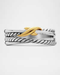 - Multi-row ring by David Yurman. - Sterling silver with spiraled accents. - 18-karat yellow gold "X" detail at center. - Approx. 0.2"W (6mm). - Made in Costa Rica. - Care Instructions: - Use the provided polishing cloth to gently wipe this item clean, then remove any remaining tarnish with mild diluted soap. Rinse with warm water, dry with a clean towel and store it in its jewelry pouch.
