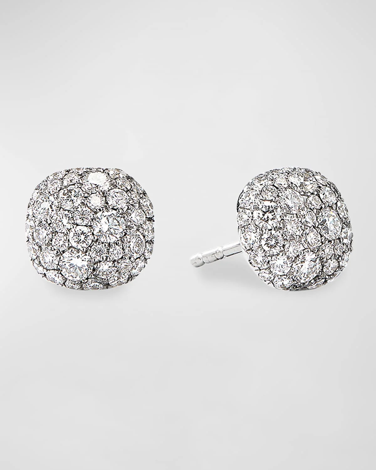 - David Yurman earrings from the Pave Collection. - Polished 18-karat white gold posts and hardware. - Cushion-shaped studs with white diamond pave. - 0.80 total diamond carat weight. - Post backs for pierced ears. - Approx. 0.3"H (8mm). - Imported.
