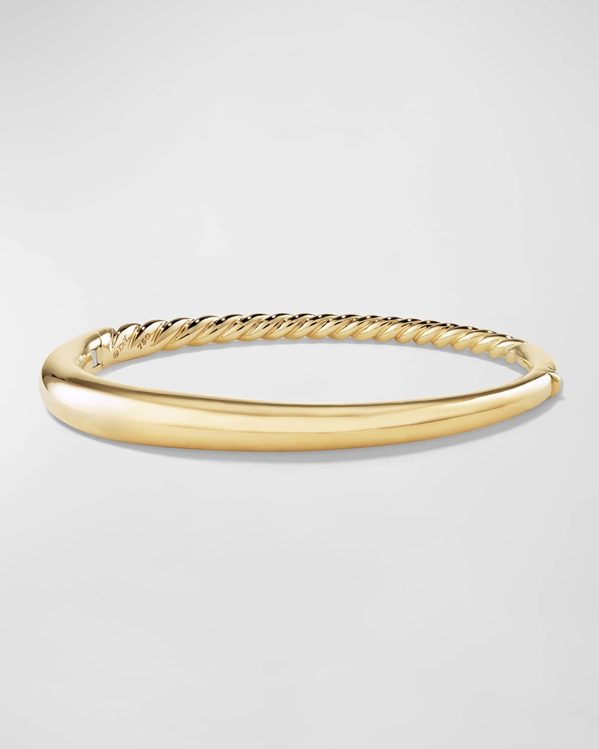 David Yurman bracelet from the Pure Form Collection. 18karat yellow gold. Tapered cuff with twisted back. Slipon style. Approx. 0.3" (6.5mm).