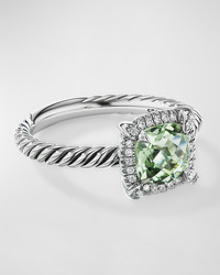 David Yurman ring Approx. 10mm across Sterling silver Cushioncut stone: amethyst, black onyx, blue topaz or prasiolite Paveset diamonds 0.11 total diamond carat weight Size 58. Imported
