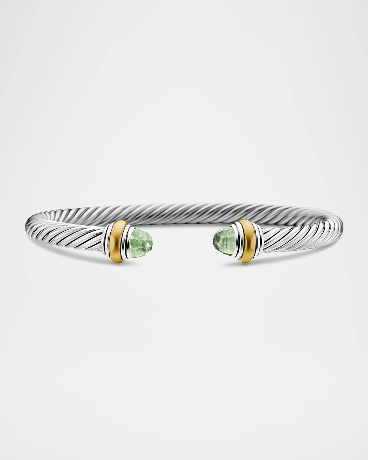 Cable Bracelet with Gemstone in Silver with 14K Gold, 5mm