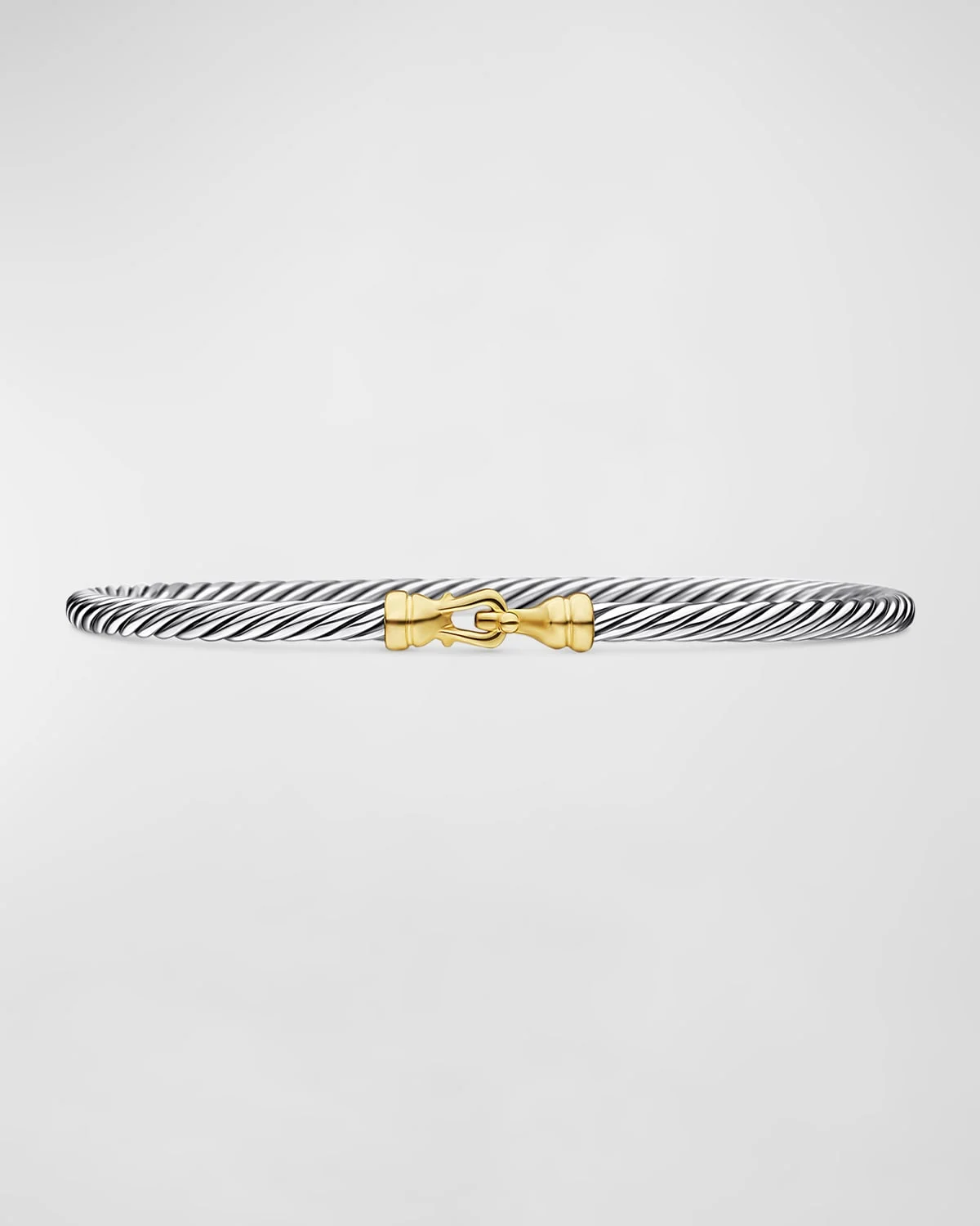 Cable Buckle Bracelet in Silver with 18K Gold, 3mm