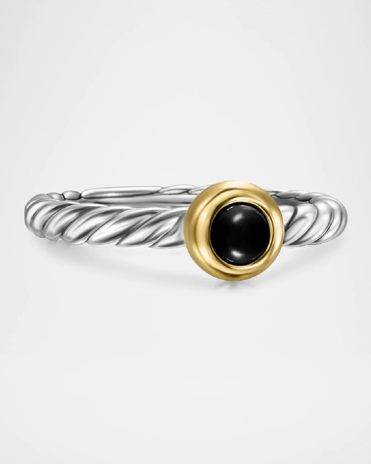 - Sterling silver and 14-karat yellow gold - Onyx, pearl, peridot, blue topaz, turquoise, amethyst, rhodolite or citrine - Naturally white freshwater cultured pearl - Approx. 2.8mm ring - Made in USA - Care Instructions: - Use the provided polishing cloth to gently wipe this item clean, then remove any remaining tarnish with mild diluted soap. Rinse with warm water, dry with a clean towel and store it in its jewelry pouch.