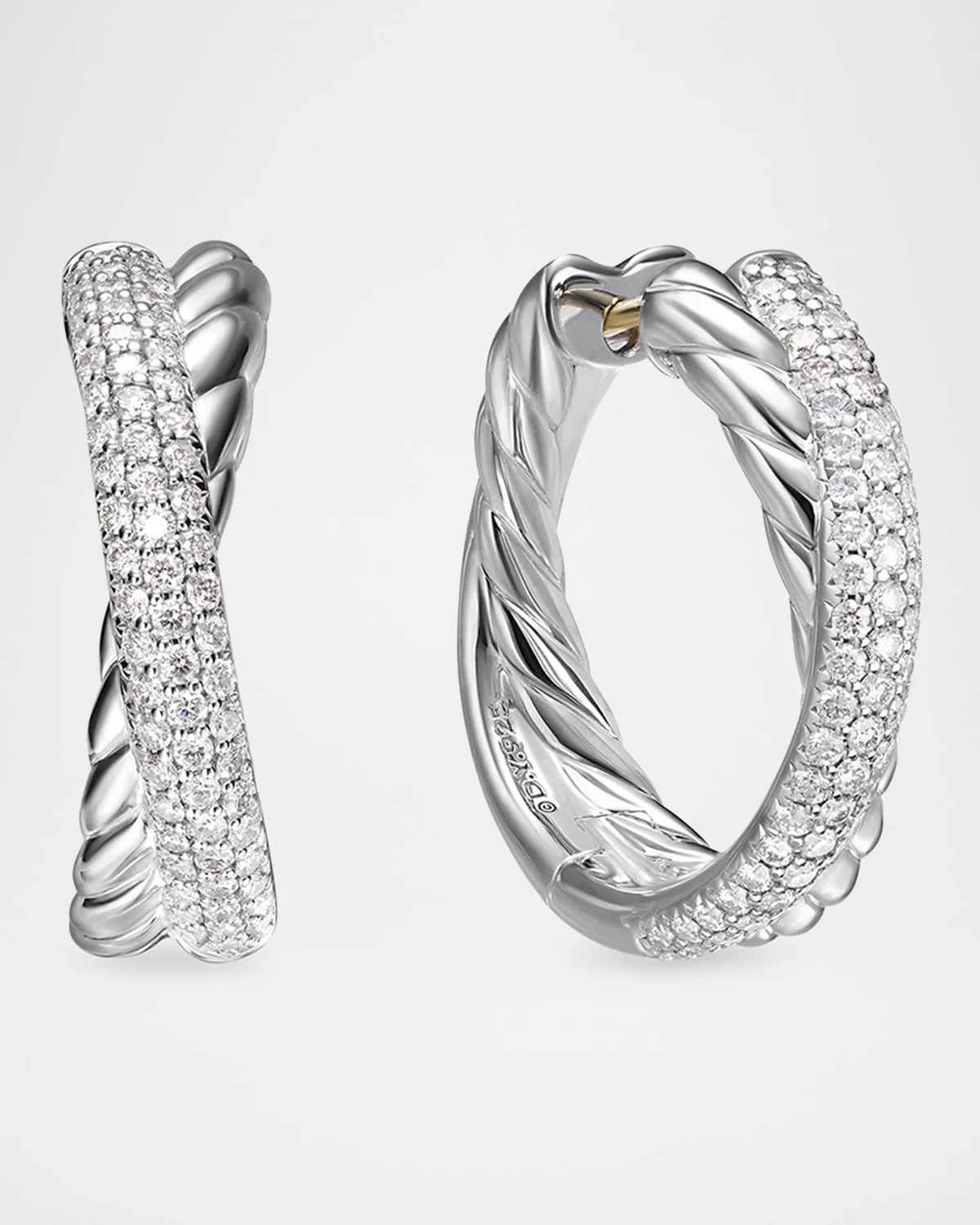 Crossover Hoop Earrings in Silver, 6.6mm, 0.9"L