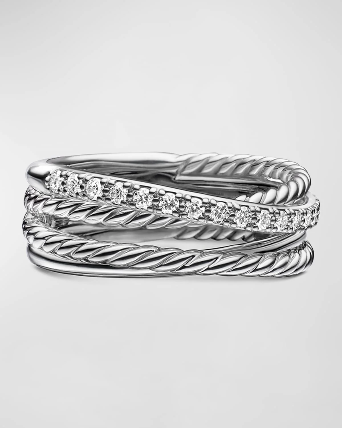 - Sterling silver - Pave diamonds, 0.18 total carat weight - Ring, 7mm wide - Care Instructions: - Use the provided polishing cloth to gently wipe this item clean, then remove any remaining tarnish with mild diluted soap. Rinse with warm water, dry with a clean towel and store it in its jewelry pouch.