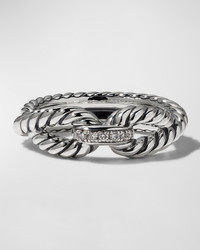 David Yurman cable loop ring Approx. 8mm Sterling silver Pave white diamonds Total diamond carat weight: 0.05 Made in USA