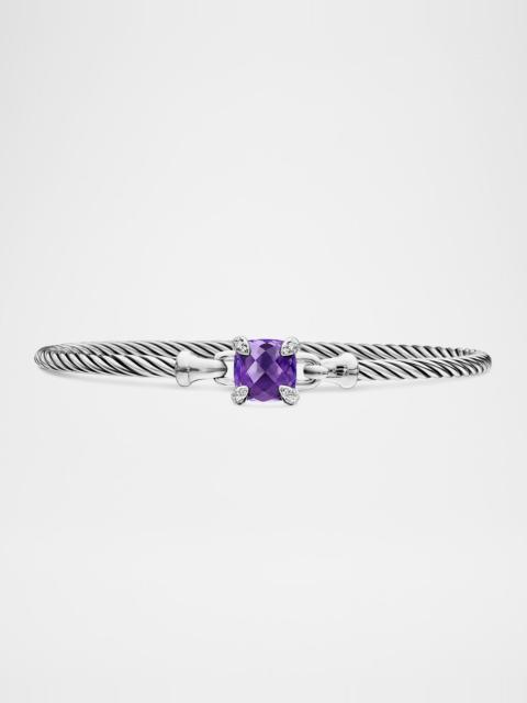 David Yurman bracelet from the Chatelaine Collection. Sterling silver cablespira hardware and settings. Amethyst, black onyx, blue topaz or prasiolite. Prong setting with stone and diamond pave. Black Onyx, 1.80 total carat weight 0.03 total diamond carat weight. Approx. 0.3"W (8mm). Hook closure. Made in USA.