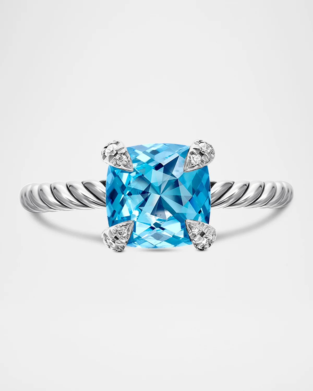 - The Chatelaine® Collection is a perfect fusion of David and Sybil Yurman’s combined art—the marriage of a sculptor and a painter—form and color. - David Yurman ring from the Chatelaine® Collection. - Sterling silver as shank, hardware and settings. - Amethyst, black onyx, prasiolite or blue topaz. - Gemstone in prong settings with diamonds. - 0.03 total diamond carat weight. - Black Onyx, 1.80 total carat weight - Approx. 8mm. - Imported. - Care Instructions: - Use the provided polishing cloth to gently wipe this item clean, then remove any remaining tarnish with mild diluted soap. Rinse with warm water, dry with a clean towel and store it in its jewelry pouch.
