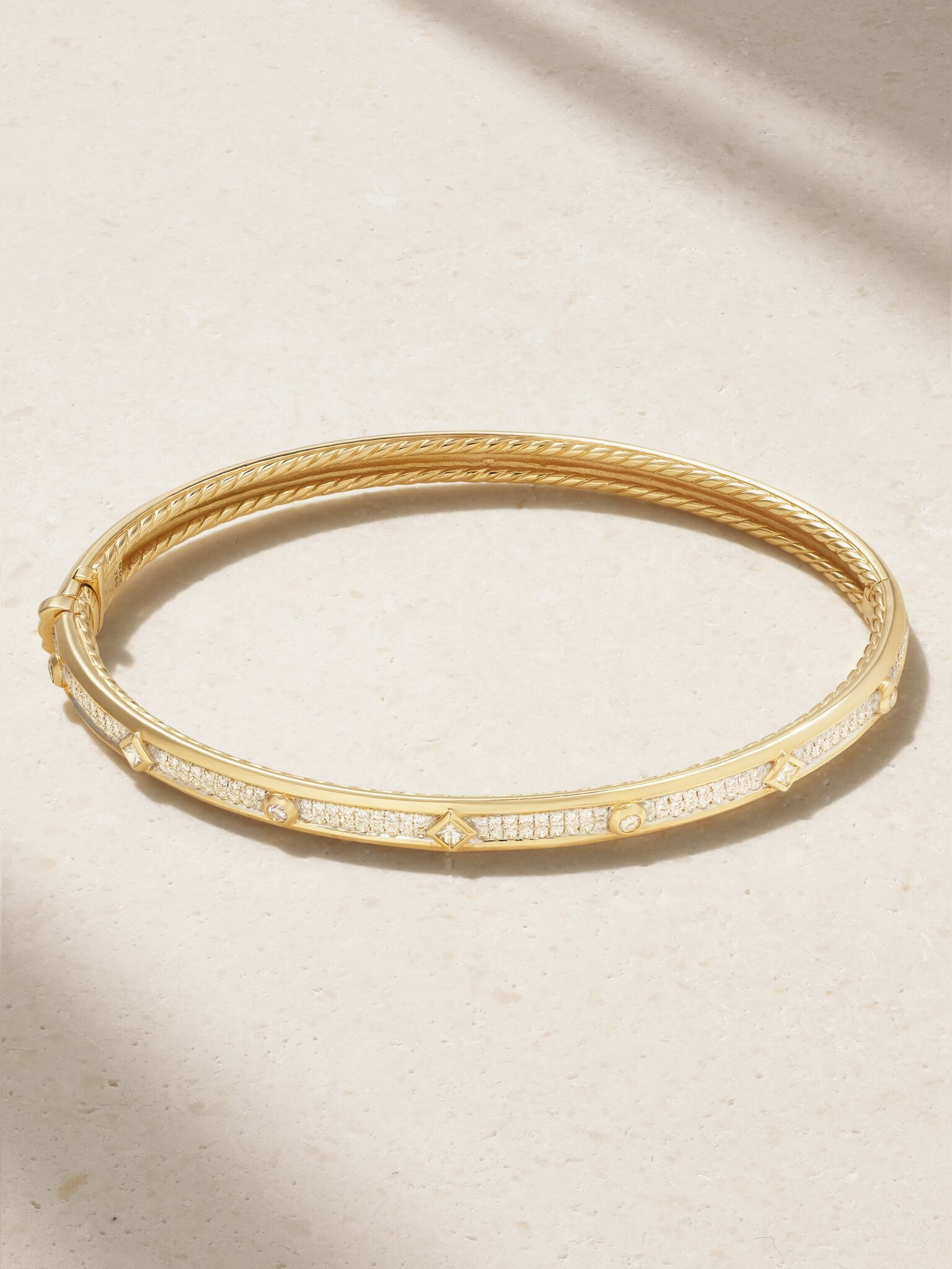 David Yurman's bracelet is part of the label's exquisite 'Modern Renaissance' collection. Designed in a slim silhouette that looks equally beautiful worn solo or stacked with other styles, it's cast from polished 18-karat gold and encrusted with diamonds. Details & Care - Diamonds, total weight: 0.6244-carats - Push clasp fastening