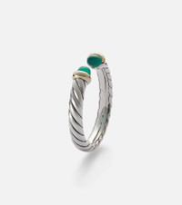 David Yurman is celebrated for its masterful fusion of impeccable craftsmanship and artistic vision, creating iconic pieces that exude elegance and timeless sophistication. The Petite Cable ring is made from 925 sterling silver and detailed with 14kt yellow gold (585/1000), embellished with 2 green onyx totaling 0.49ctw. Product Details - Material: 925 sterling silver, 14kt yellow gold (585/1000) - Made in India - Item color: silver - Color: silver - Stone I: onyx - Carat total weight (ctw): 0.49 - onyx - Item number: P01126565 Size & Fit - Max. width 4mm-0.15"