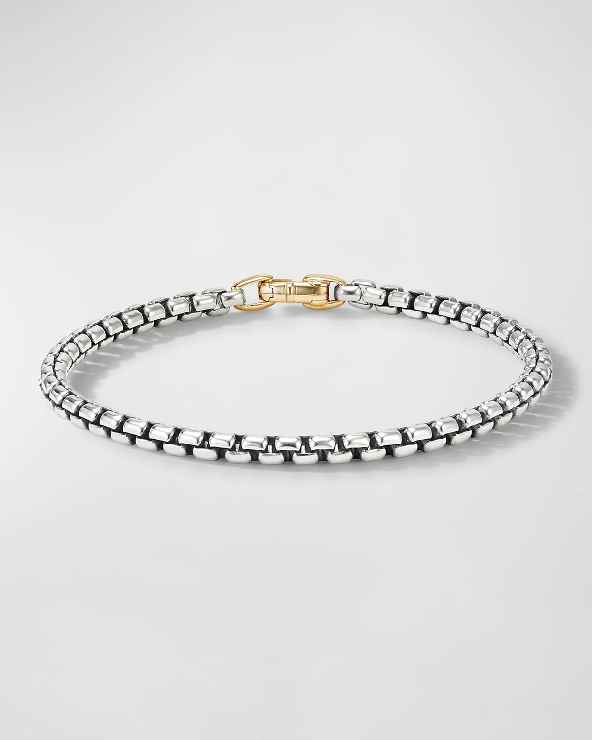 - David Yurman bracelet from the DY Bel Aire Collection. - Sterling silver links with 14-karat yellow gold clasp. - Approx. 4mm wide. - Made in USA. - Care Instructions: - Use the provided polishing cloth to gently wipe this item clean, then remove any remaining tarnish with mild diluted soap. Rinse with warm water, dry with a clean towel and store it in its jewelry pouch.