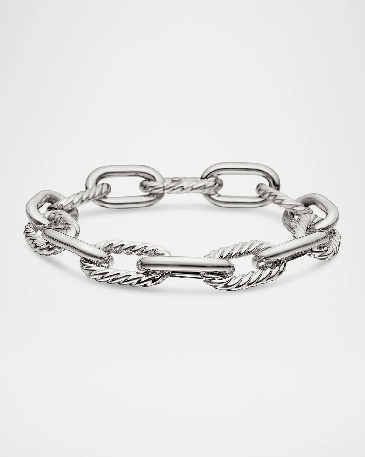 Madison medium link bracelet by David Yurman. Sterling silver polished and cablemotif links. Approx. 7.8"L; 0.4"W (11mm). Integrated cablepush clasp.