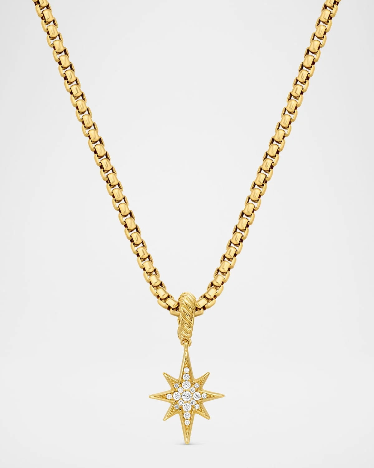 - David Yurman starburst charm. - 18-karat yellow gold hardware. - North star with diamond pave. - 0.10 total diamond carat weight. - Charm only; chain not included. - Approx. 15mm. - Imported.