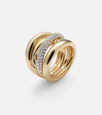 David Yurman is renowned for sophisticated craftsmanship and a unique approach to daily elegance. Made from 18kt gold, the DY Crossover® ring lives true to its name with five bands intertwined, one embellished with shimmering hand-set diamonds. Product Details - Material: 18kt yellow gold - Made in Thailand - Item color: gold - Stone I: diamonds, 0.62ctw, round-cut, pave setting - This piece features natural diamonds only - Item number: P01037740 Size & Fit - Max. width 18mm-0.7"