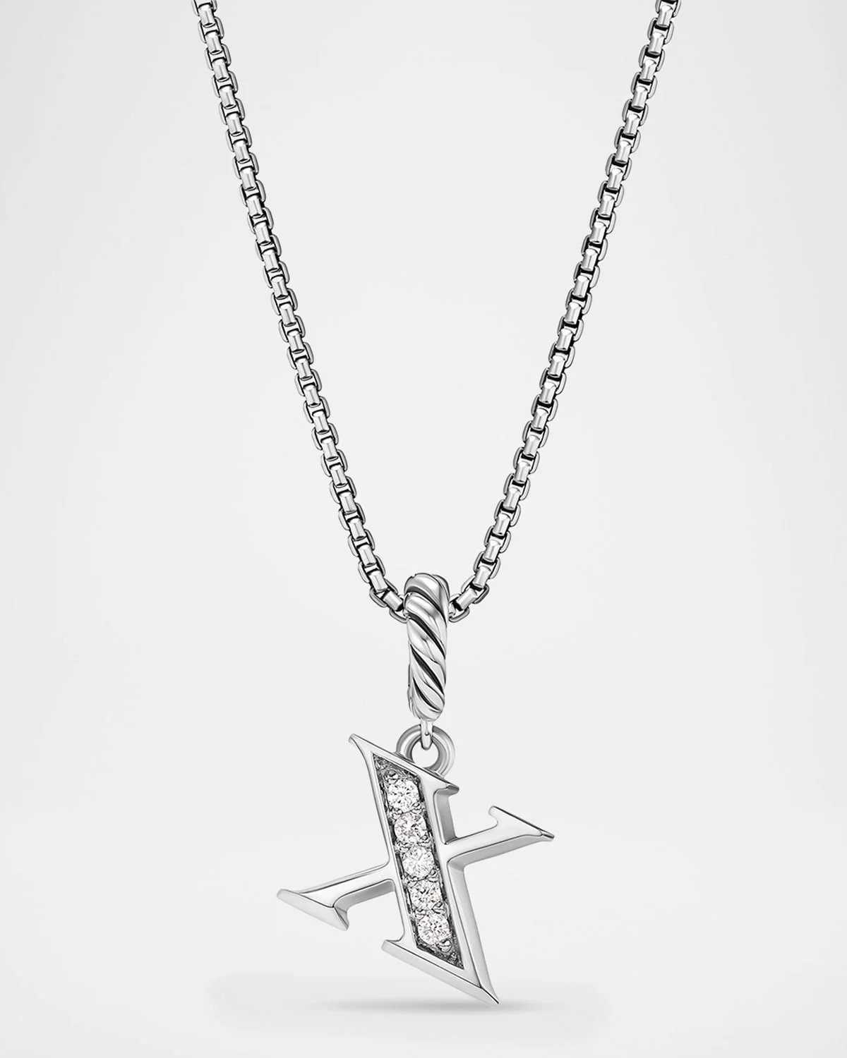 Pave Initial Pendant Necklace with Diamonds in Silver, 17mm