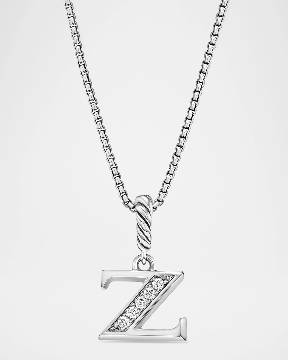 Pave Initial Pendant Necklace with Diamonds in Silver, 17mm