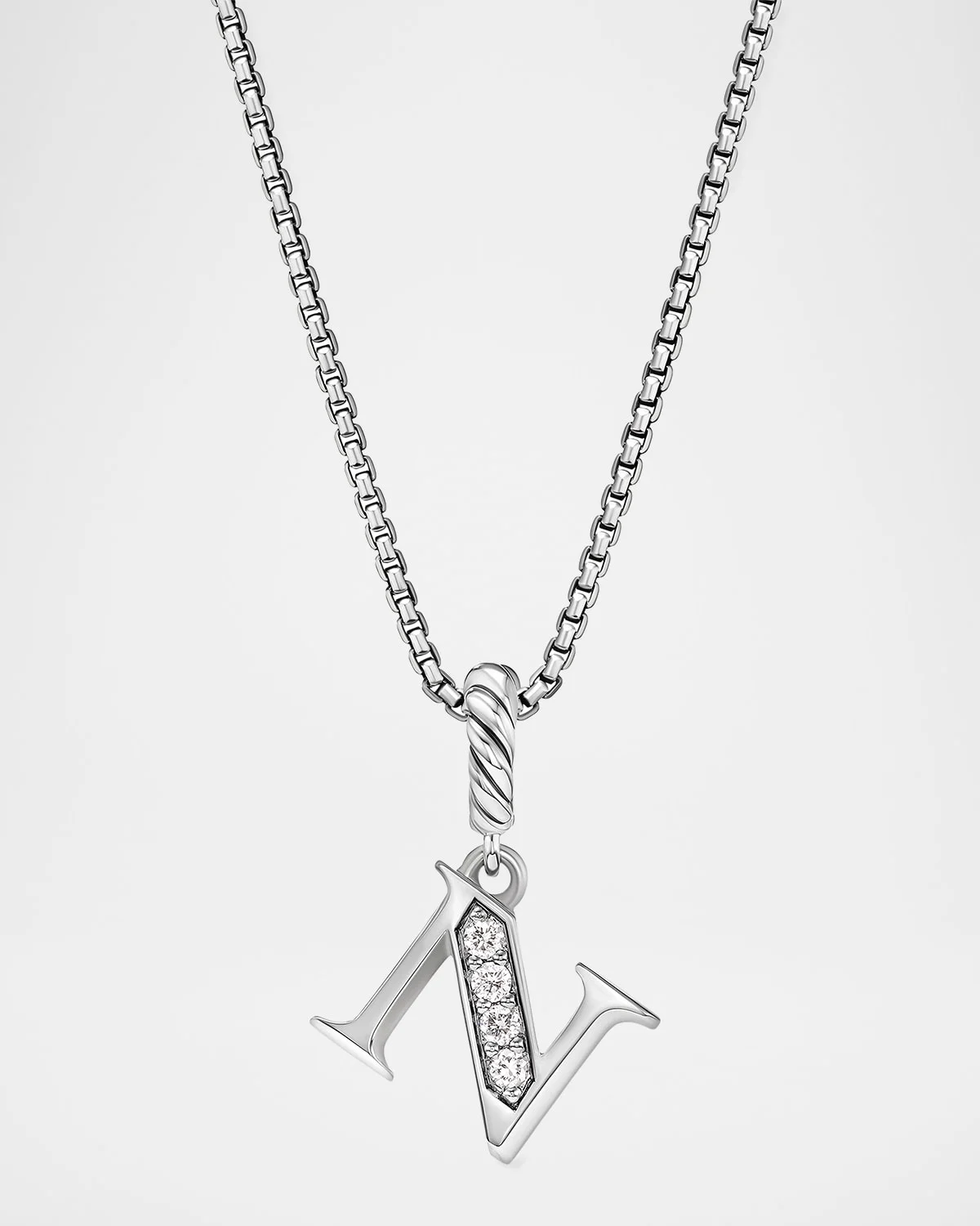Pave Initial Pendant Necklace with Diamonds in Silver, 17mm