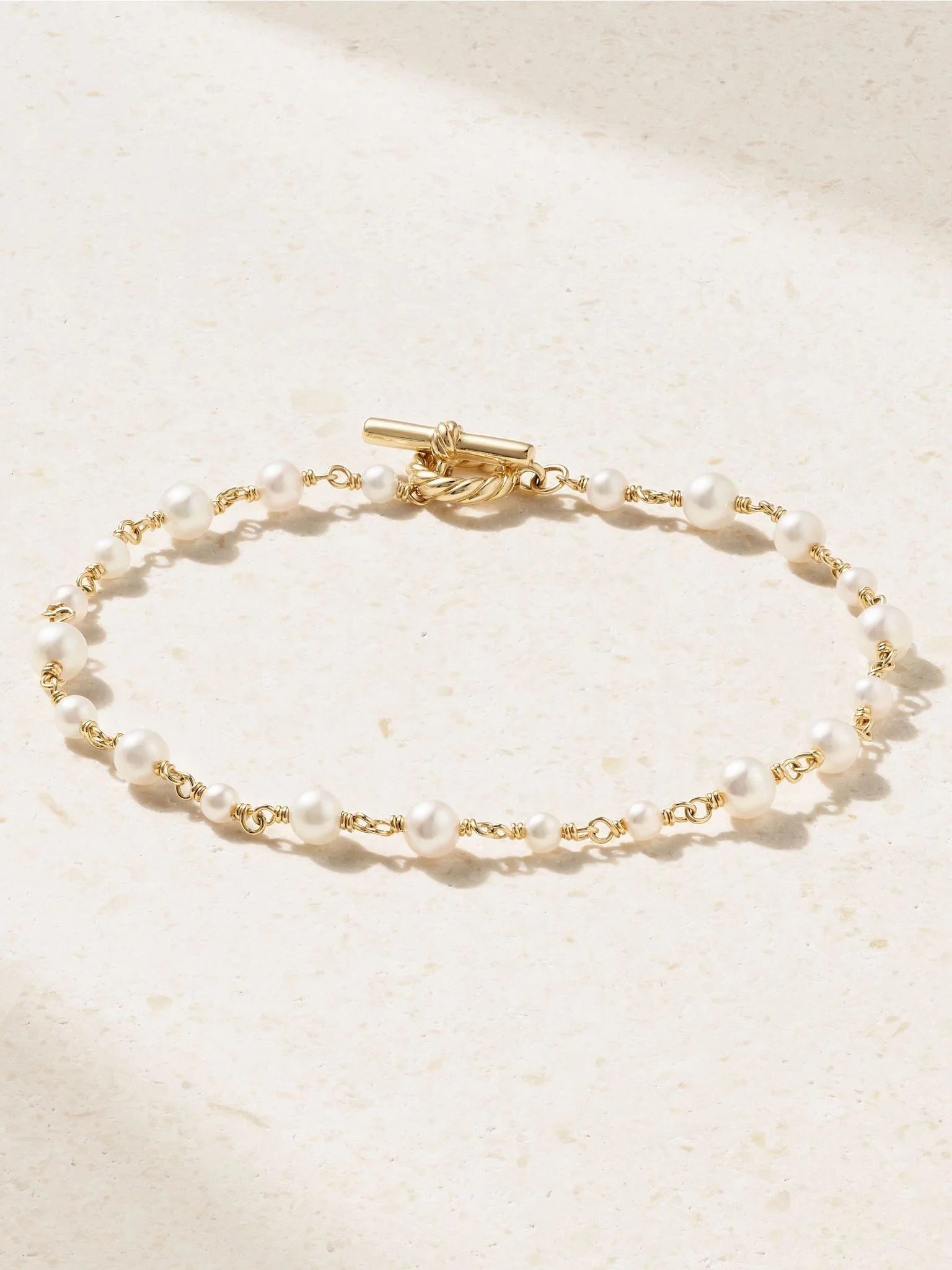 David Yurman has incorporated pearls into his jewelry since the '70s - the pieces are designed to "accentuate their nuanced coloring and lustrous beauty." This bracelet is crafted from 18-karat gold and strung with freshwater ones in varying sizes. Details & Care - T-bar fastening - Freshwater pearls: China - This piece has been certified in accordance with the Hallmarking Act 1973