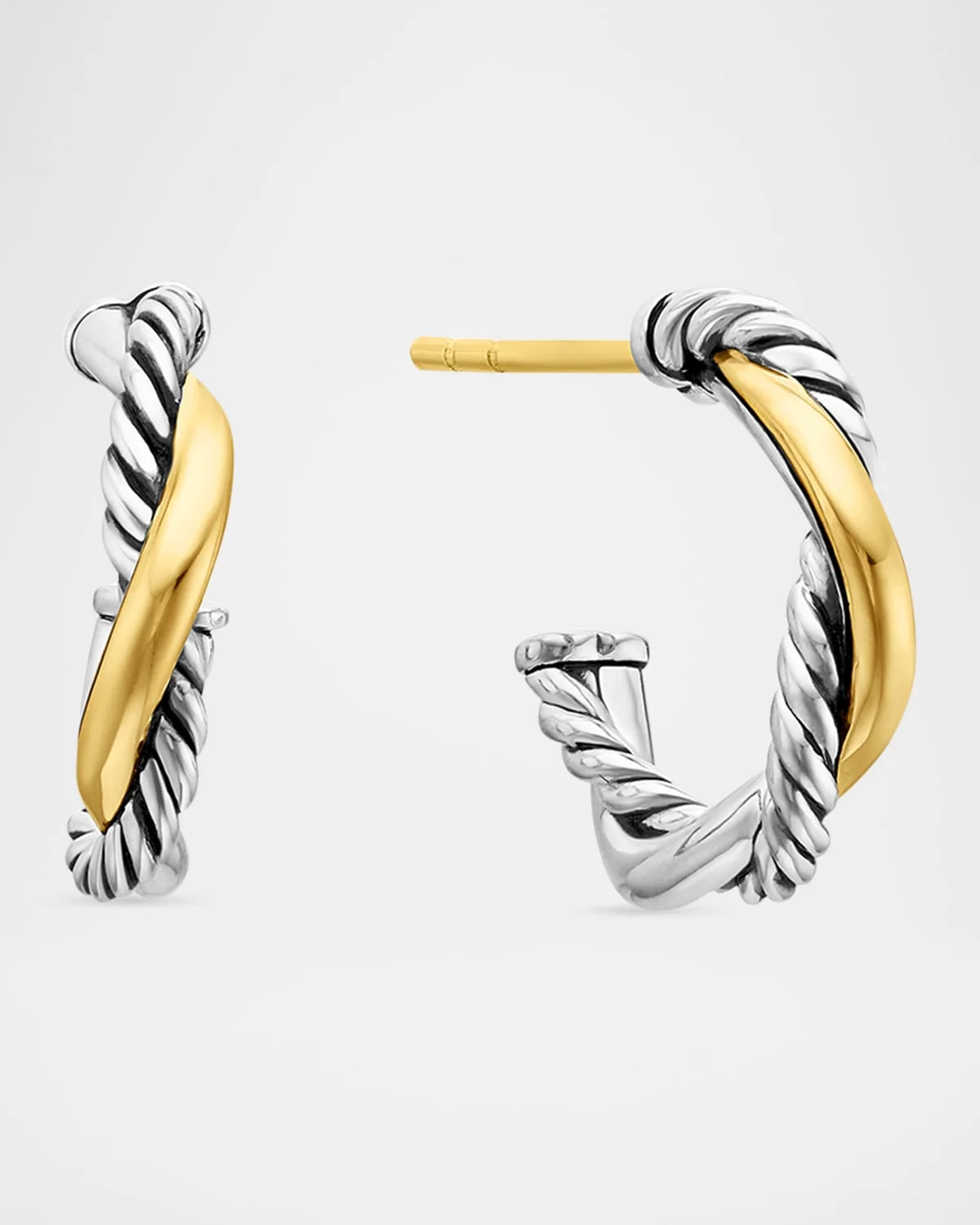 Sterling silver with 14karat yellow gold Approx. 3mm x 2.9mm hoops For pierced ears Imported