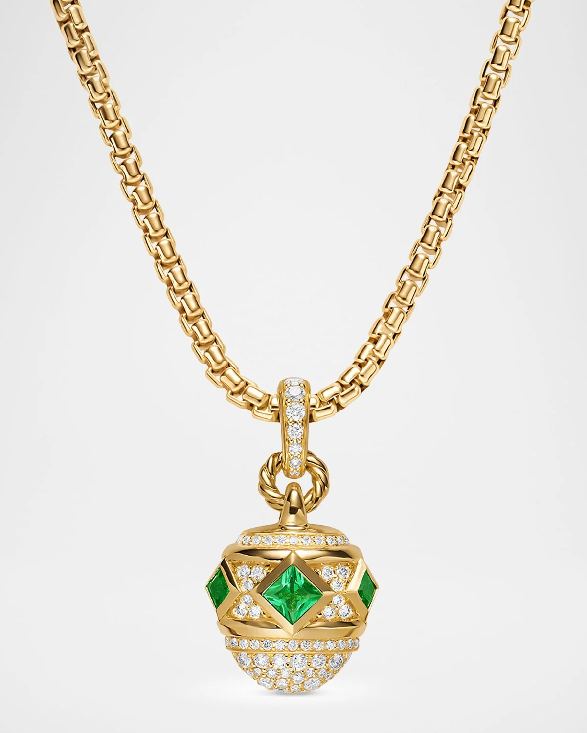 Renaissance Pave Amulet with Emeralds and Diamonds in 18K Gold, 26mm