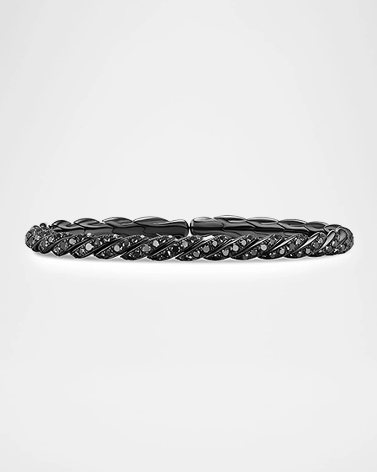 Sculpted Cable Flex Bracelet with Black Diamonds in 18K Gold, 5mm