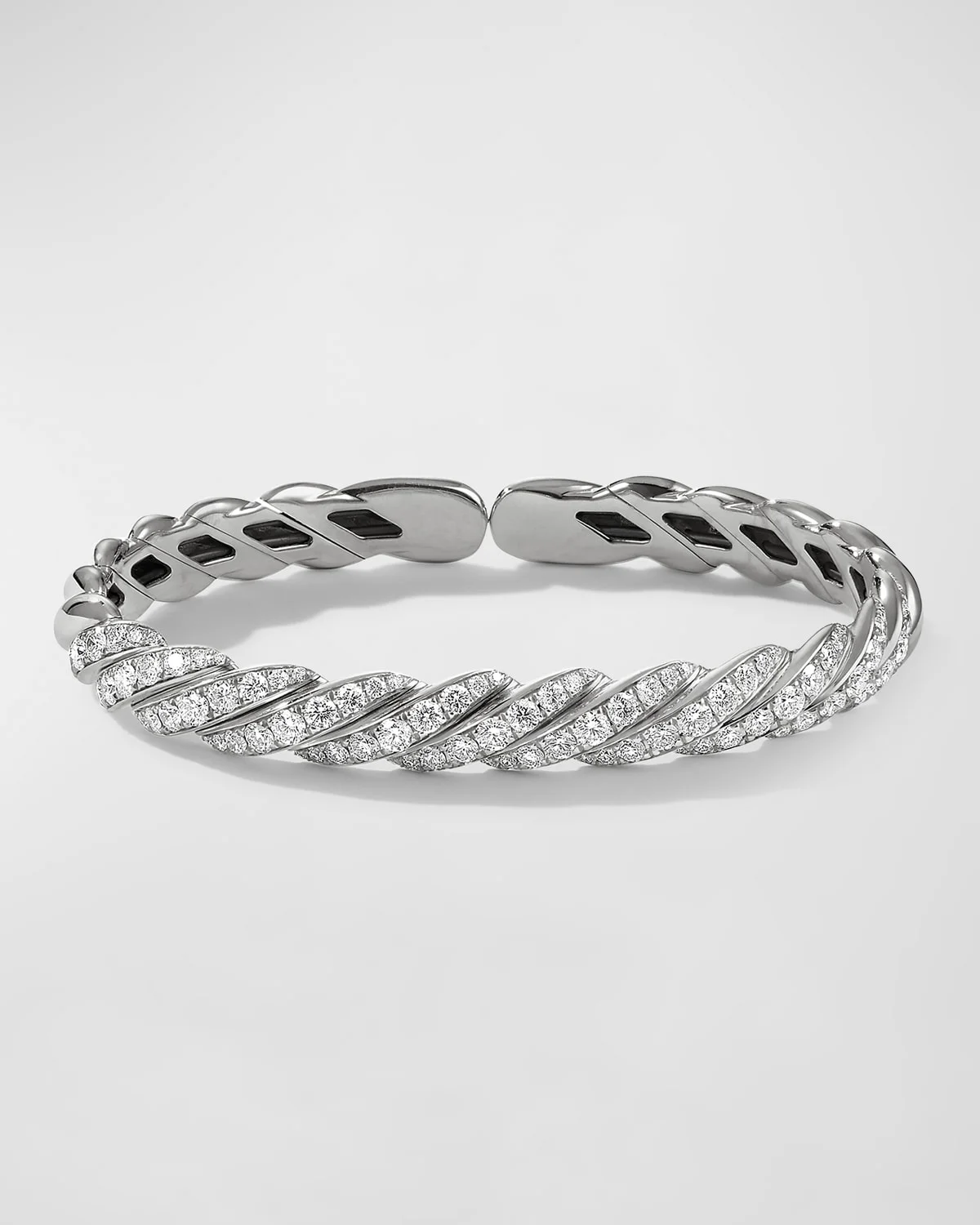 Sculpted Cable Flex Bracelet with Diamonds in 18K White Gold, 7.5mm