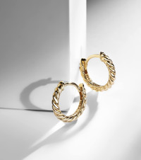 David Yurman is renowned for sophisticated craftsmanship and a unique approach to daily elegance. Crafted from 18kt yellow gold with the iconic twisted silhouette, the Sculpted Cable Micro hoop earrings are a versatile and polished addition to your collection. Product Details - Material: 18kt yellow gold - Made in Thailand - For pierced ears - Item number: P01037761 Size & Fit - Length 10mm-0.4" - Max. width 2mm-0.1" - Inner diameter 8mm-0.3"