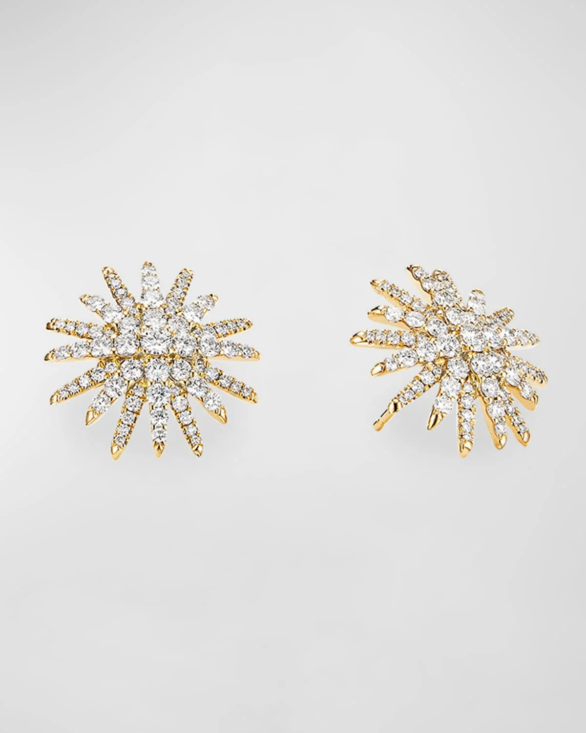 - David Yurman earrings from the Starburst Collection. - Polished 18-karat yellow gold posts and hardware. - Starburst studs with white diamond pave. - 1.76 total diamond carat weight. - Post backs for pierced ears. - Approx. 0.75"H (19mm). - Imported.