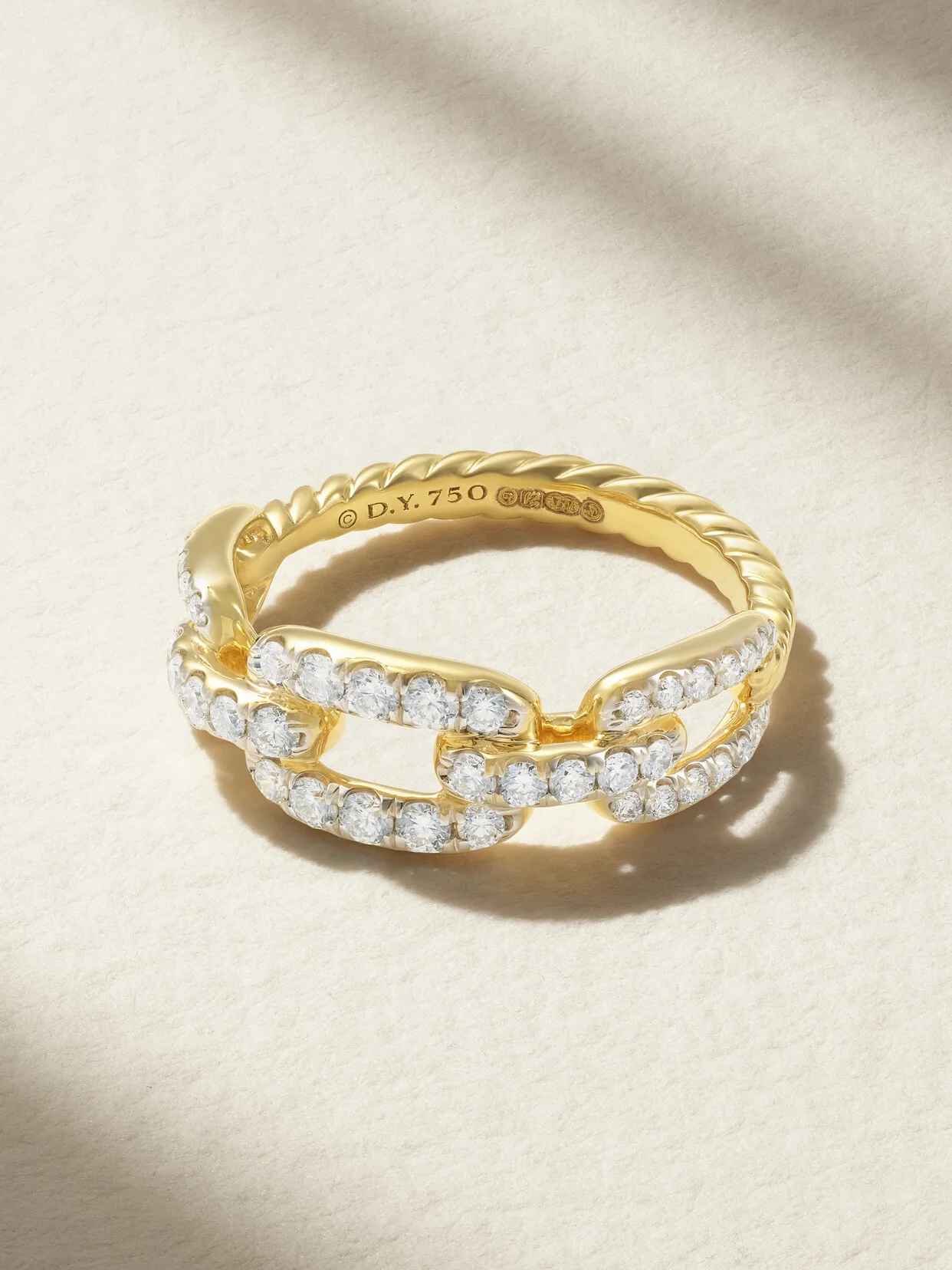 The slim chain links across David Yurman's 'Stax' ring are encrusted with pave diamonds that create the prettiest sparkle. It's crafted from 18-karat gold with a pleated-effect band - a brand signature.