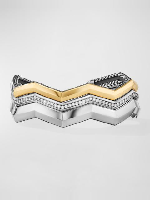 Zig Zag Stax Three Row Ring with Diamonds in 18K Gold and Silver, 11mm