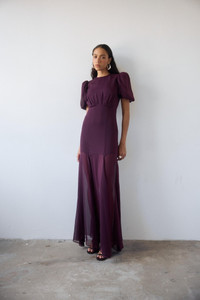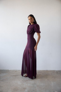 - Maxi length dress - Skirt is semi-sheer - High round neck with puff sleeves - Main body is lined for modesty - Suitable for wearing a bra - Fitted bodice with princess seam detail - Concealed zip at centre back This style is crafted from a lightweight crinkle chiffon selected for its delicate drape and flow. This style is selected for its romantic and airy feel. PRODUCT DETAILS & FIT - Designed to skim the body - Dress is accessed through concealed zip at centre back - This style is bra friendly - Fits true to size, select your normal size - Dress length: 154cm - 100% polyester - Dry clean only - This style can be altered in length and fit Model is 5’10 / 178cm wearing a UK8 / US 4 / EU 36 Designed in Ibiza & London