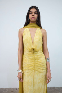 The Amora Maxi Dress is a floor-length silhouette defined by softness, light and fluid movement. Crafted in delicate lace tulle, it features a plunging neckline balanced by gentle ruching through the body, drawing the eye inward before releasing into an elongated, flowing hem. A draped scarf detail trails the back, adding movement and airiness as the fabric shifts with the wearer. Floral rosette Deep V-neck at the centre front Low back Fully lined Detachable scarf PRODUCT & FIT Fits true to size 30% Nylon 70% Cotton Dress length: 151.5cm (UK8) Designed in London & Ibiza Model is 175cm / 5” 9” - Size UK 6 wearing a size UK 8 to fit effortlessly.