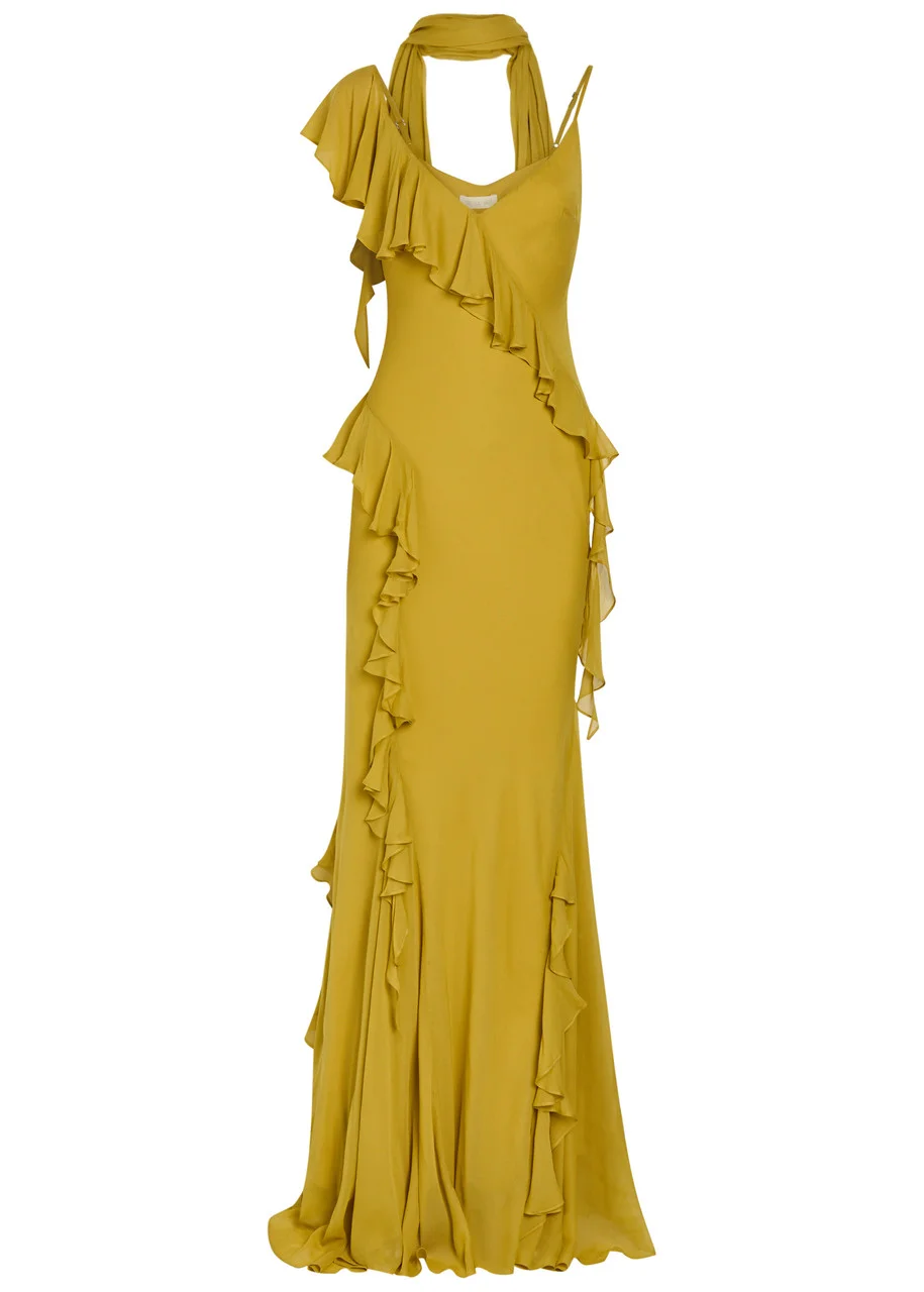 DE LA Vali Mayara Scar-effect Ruffled Chiffon Gown