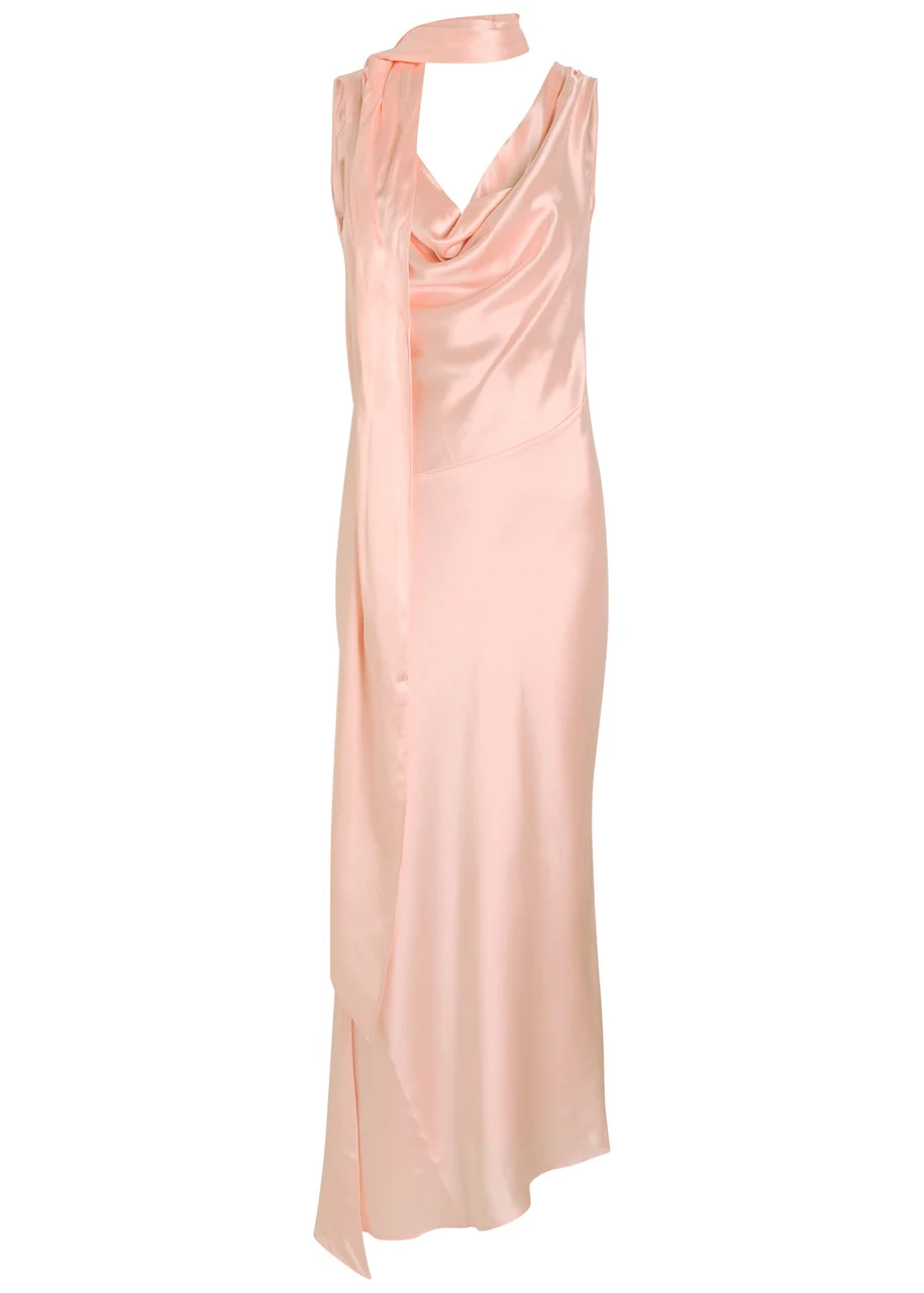 DE LA Vali Thebe Scarf-effect Draped Silk-satin Midi Slip Dress
