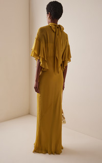 De La Vali is an ode to the design-duo's muse 'Vali Myers', a visionary artist, dancer and bohemian whose extroverted and vivacious way of being captivated all who she encountered. In turn, the label's striking statement pieces are designed for confidence and empowerment when worn. 'Lena' is a high-neck maxi cut on the bias from fluid georgette with layers of ruffles at the sleeves. PRODUCT DETAILS - Spring '26 - Zip fastening - Composition: 100% viscose - Dry clean - Imported