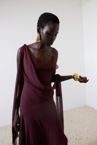 MISTRAL MIDI DRESS IN EARTH CHIFFON & LACE