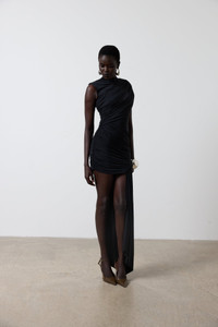 - Mini length dress - Fully lined - Grown on funnel neck - Draped detail across shoulder and waist - Draped skirt with dramatic asymmetric sash - Suitable for wearing a bra This style is crafted from a lightweight jersey and was selected for its smooth delicate flow. This style is selected for its effortless style and modern edge. PRODUCT DETAILS & FIT - Designed to fit the body - Dress is accessed over the head with no fastening - Dress length: 80cm (UK8) - 100% viscose - Dry clean only - This style can be altered in length and fit - True to size Model is 177cm / 5” 9” wearing a UK8 / US 4 / EU 36 Designed in Ibiza & London