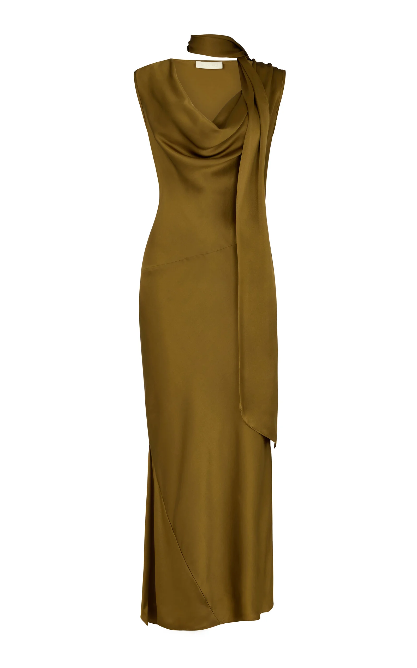 Thebe Draped Satin Midi Dress olive