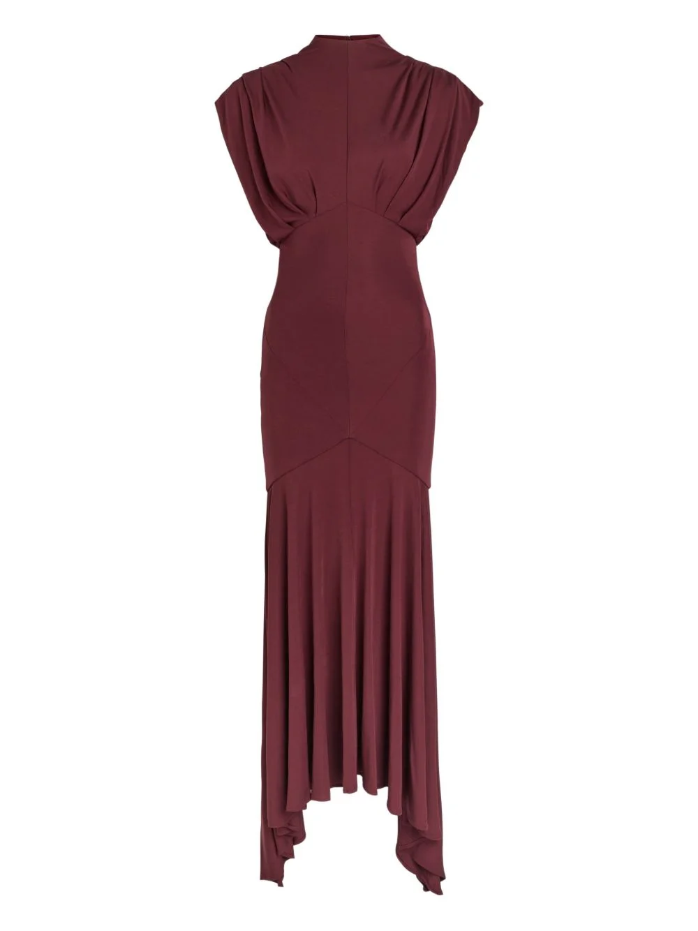 Vasudha draped maxi dress Highlights - Earth - Mock neck - Cap sleeves - Draped detailing - Geometric seam detail - Asymmetric hem Imported Composition Outer: Rayon 100% Lining: Nylon 85%, Elastane 15% Washing instructions Dry Clean Only