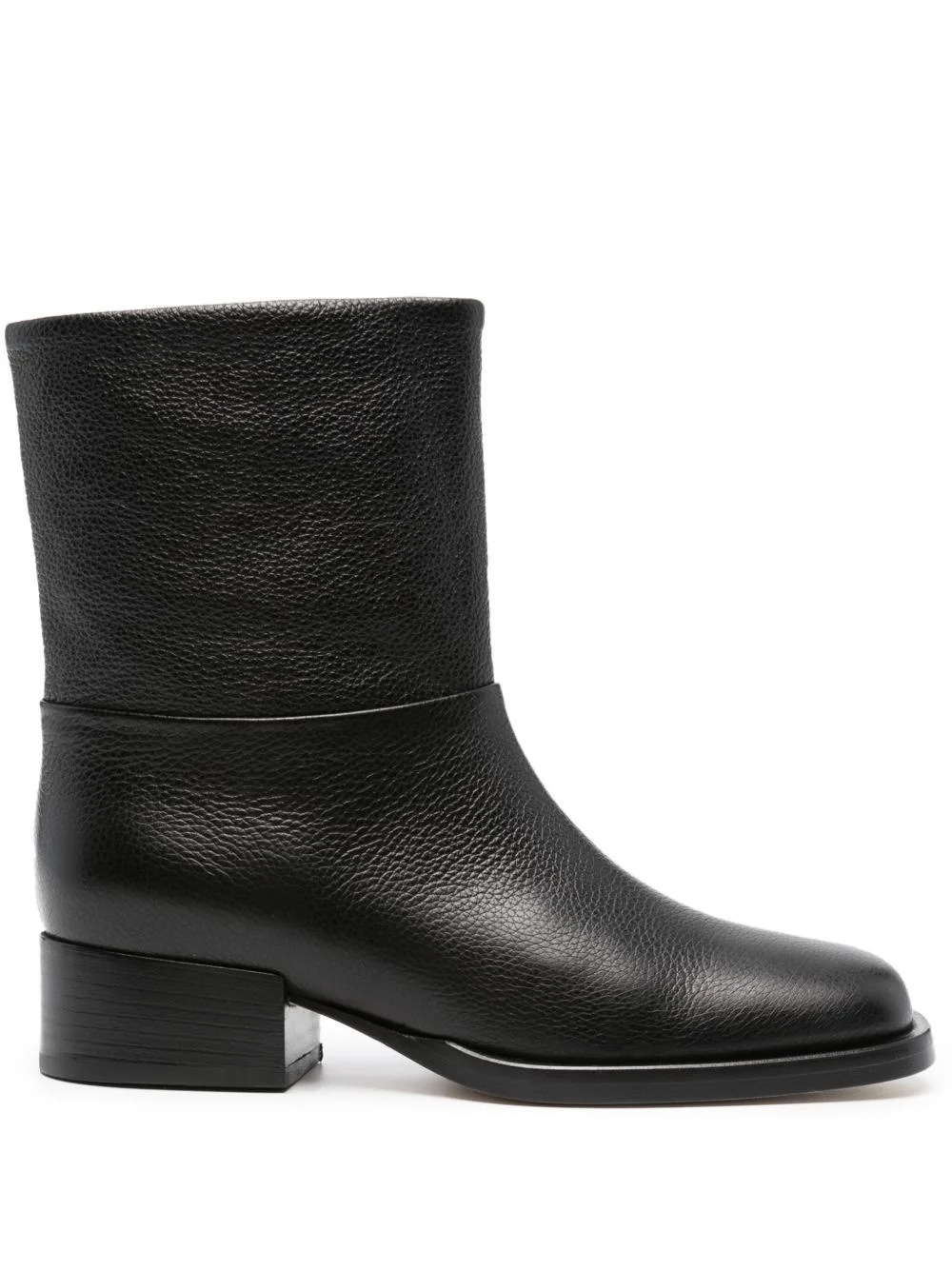 40mm square-toe ankle boots Highlights - Jet black - Calf leather - Tonal stitching - Square toe - Slip-on style - Branded leather insole - 40mm block heel - Leather sole Made in Italy Composition Leather 100% SIZE & FIT Measurement CIRCUMFERENCE 11.02 in(28 cm) HEEL 1.57 in(4 cm) Sole height 6.69 in(17 cm) HEIGHT 6.69 in(17 cm)